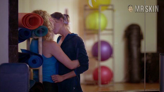Natasha plays a lesbian who is hooking up with Aubrey Plaza. We get both girls in spandex as they kiss after working out at the gym. It’s a sexy girl on girl moment as they playfully touch and make out. Judy shows off some serious cleavage in a low cut dress then some side-booty when she is face down on the bed getting banged by a guy with a world class mullet.