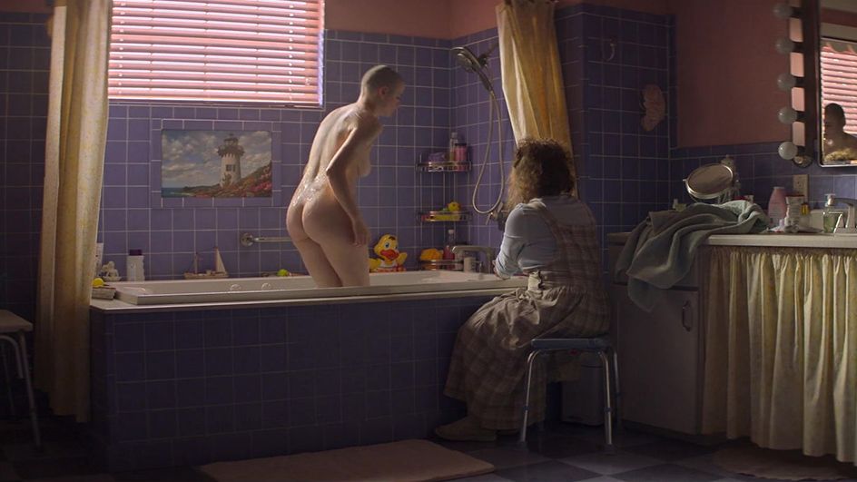 Former child star Joey King took the leap into adulthood with her fearless performance in the ripped-from-the-headlines miniseries The Act. Joey and on-screen mom Patricia Arquette run a scam in which they pretend Joey's character has cancer—hence the shaved head—and her mother coddles her in many ways, including by bathing her. Thankfully for us, Joey stands up to turn this bubble bath into a bubble butt bath, baring her beautifully rotund backside as she tells her mother, "I'm not a baby!" Nope, she's a full blown babe!