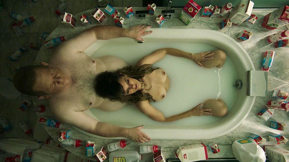 Frankie Shaw has had a talent for putting a strange twist on her nude scenes throughout the run of her show SMILF, but she outdid herself to open the second season's second episode! In a dream sequence, Frankie sits nude in a bathtub filled with fifty gallons of milk. The catch is she's also in the tub with a hairy older guy! Hey buddy, don't milk it!