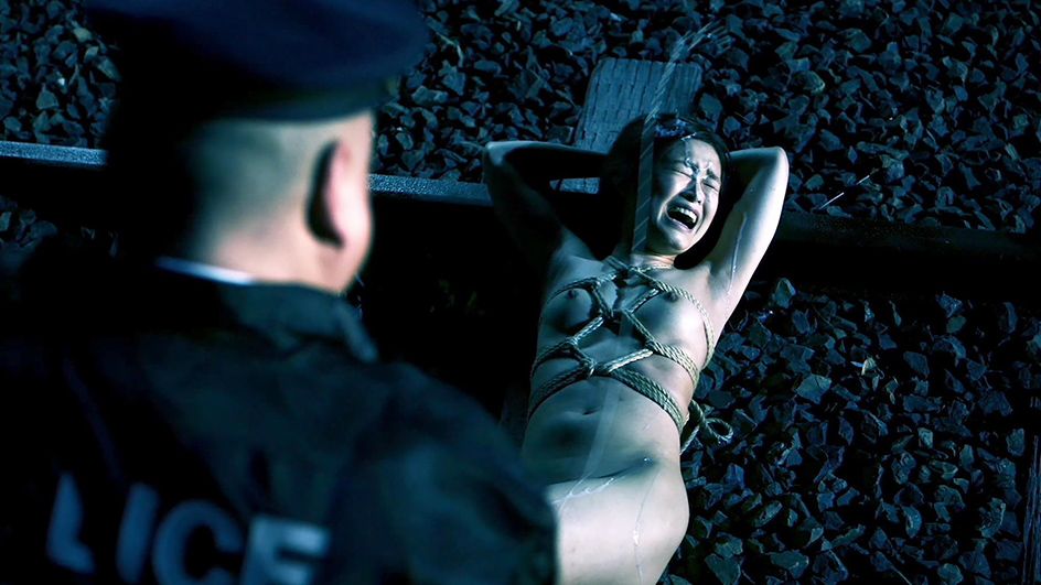 A cop in our Breast Picture winner She's Just a Shadow one-ups legendary Dudley Do-Right villain Snidely Whiplash with his villainous antics. Only 37 seconds into the movie, he not only ties poor Makato Takeuchi to some railroad tracks, but he then pees all over her! There's nothing else to call this guy but Snidely Whip-splash!
