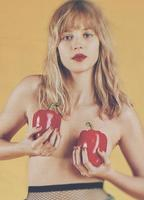 Angele is a big star, but you might not know who she is if you don't live in Western Europe. She is a Belgian beauty who hails from the town of Uccle, but she will have you wishing that she could call you uncle. She is a singer and a songwriter who has been tearing up the Belgian and French music charts since 2017. She is a producer, writer, musician, and a model who has us hoping that she will go nude someday. She has gotten kind of close, but we will talk to that in just a moment. This 5'7" blonde beauty based in Brussels has done a lot of music videos and she has collaborated with her brother Romeo Elvis and with pop superstar Dua Lipa. She made a special guest appearance in the absolutely wild musical Annette (2021) that had us wanting to see a lot more of this babe in some acting jobs. She plays herself in the Netflix documentary that she also co-produced called, appropriately, Angele. In one scene, we get to see a still image of her modeling topless. She puts two red peppers in front of her breasts to suggest that this little minx is one spicy pepper that will please your pecker. In another scene, we watch her dance in a sports bra and gray sweatpants. She looks casual, chic, and fit all at once. We love watching her dance because she is filled with so much joy...and her cleavage bounces joyfully, too!