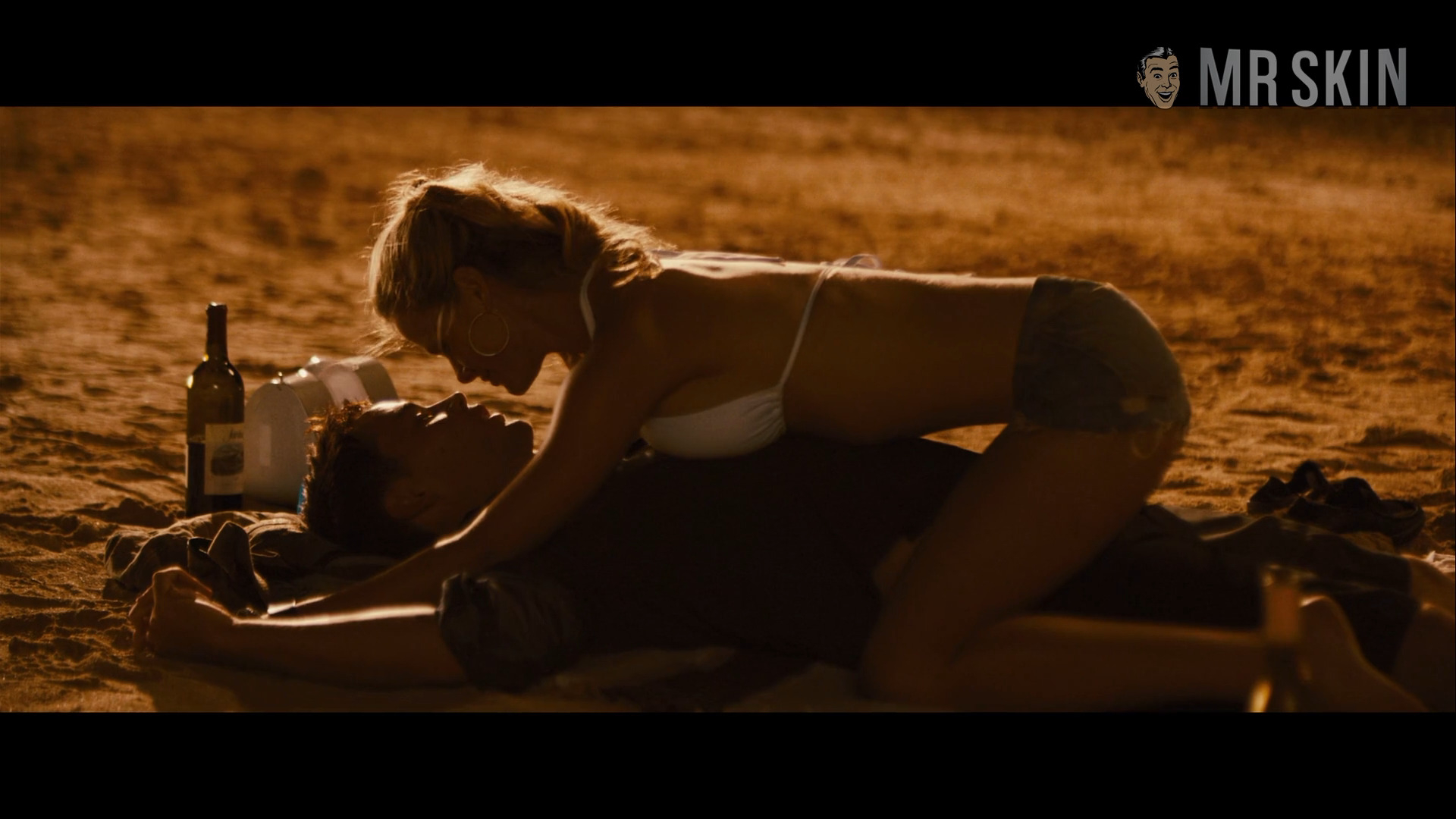 It’s Rihanna vs. the aliens in the board game turned action-extravaganza Battleship (2012). Five alien spacecrafts enter our solar system and in grand tradition the US decides to blow those suckers up. But these crafty ETs have set up a force-field that forms a defensive shield around their craft with only three U.S. battleships conveniently enclosed inside the barrier. Now it’s up to communications officer Cora (Rihanna) and shrewd sailor Alex (Taylor Kitsch) to take down the space invaders. There’s no nudity in this summer blockbuster but Brooklyn Decker raises masts playing a physical therapist who sure knows how to fill at a white bikini at the 14-minute mark. All hands on Decker!