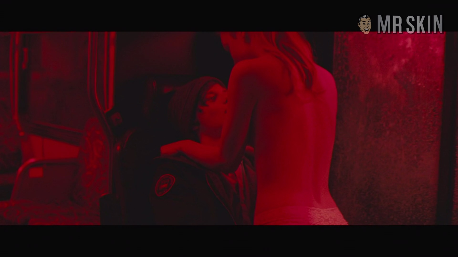 (0:09) Some quick visible cleavage on Sloan Estelle just before she poops on the bus (0:12) Photo of Sarah Mezzanote in a towel on the cell phone that Charlie Tahan is masturbating to. (0:19) Bare back and the top of the back of her panties on Sarah Mezzanote kissing Charlie Tahan in his lap. (0:28) Cleavage on REDDRESS on the bus. Gets closer when the music on the bus begins. (Doesn’t appear credited.) (0:29) REDDRESS kisses BLACK FRIEND on the bus. (Doesn’t appear credited.) (1:02) Sydney Farley strips to her bra on the bed with Charlie Tahan. They begin to have sex. When he cums too fast she begins masturbating under the blanket. (1:04) Nice aerial cleavage shot on Sydney Farley riding a guy acting possessed.