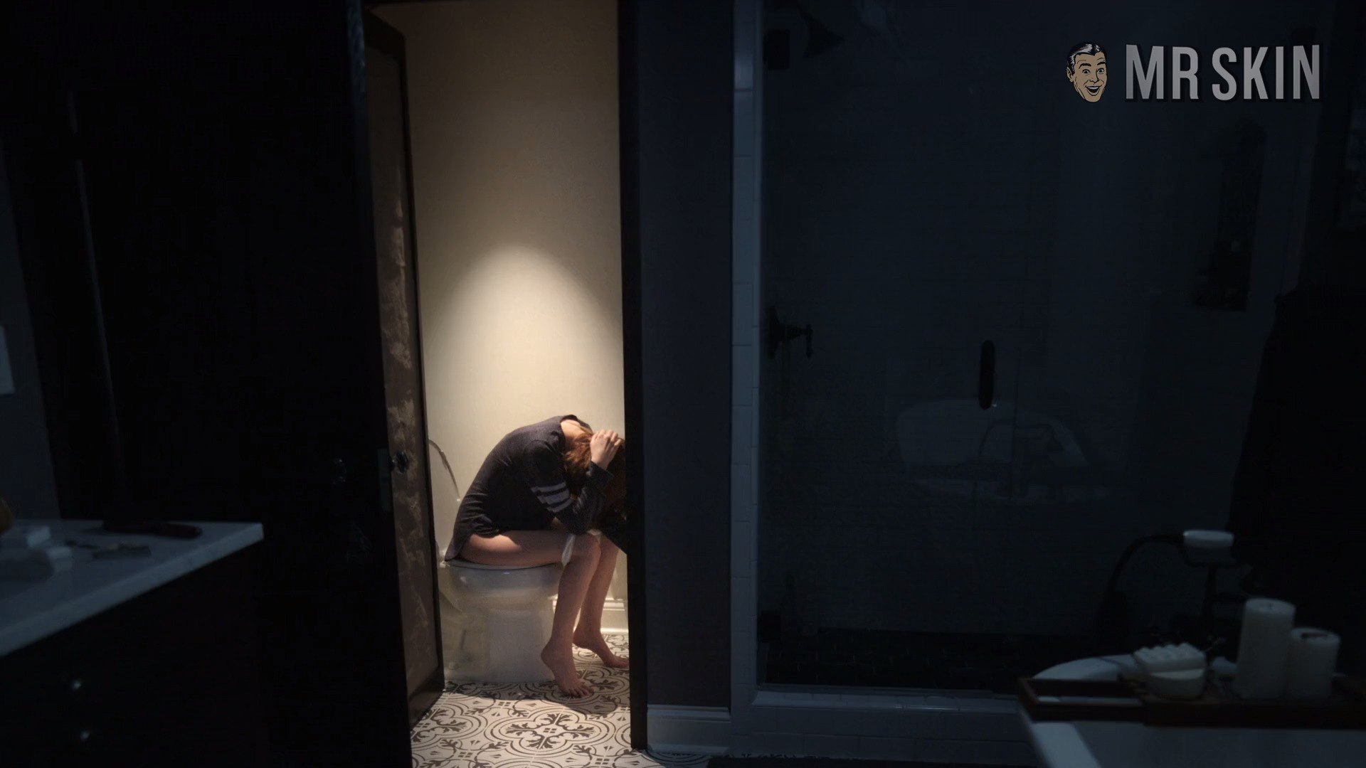 Dummy (2020) is a comedy starring the always adorable Anna Kendrick as an aspiring writer who finds out that her older, more successful TV writer boyfriend has a sex doll. It's a really beautiful sex doll that kind of has hair like Anna's, but we digress. Anna's discovery takes a turn when she thinks the sex doll is talking to her. Her therapist convinces her that the doll's "voice" is a part of her she needs to come to terms with, so she does this by taking the doll on an epic trip with her to travel the world and discover what it means to be a doll - er I mean woman - in the world. You had us at Anna Kendrick and a sex doll. The implications there are endless! Anna plays Cody Heller, the writer, and she takes us for a ride when she wears a baggy T-shirt dress and black stockings. She sexily takes off her black stockings to reveal shapely calves on her skinny legs. The T-shirt dress stays on, however, but her stocking-less look implies that there nothing is on underneath. She flirts with her boyfriend and ends up getting on top of him for a makeout that cuts away before any sex can happen. We're no dummies - we know there's something sexy going on under her shirt. Maybe a bra? Maybe underwear? We luckily see her undies later on. Ann Kendrick uses the can, so we get to see her pull down her white underwear as she sits on the toilet in that same big T-shirt. The shirt still covers her upper body and her crotch and buns, but we do get to see her silky thighs.