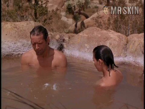In 1994, she made the classic indie dramedy Across the Moon. The film starred lovely actresses Elizabeth Peña and Christina Applegate as two women who live together in an old trailer near the state prison where their boyfriends are both serving time. They want to be close to their boyfriends for those conjugal visits and they support one another by doing sex work. Christina does not go nude, but Elizabeth lets her pair out when she strips nude to take a skinny dip in muddy water with her man.