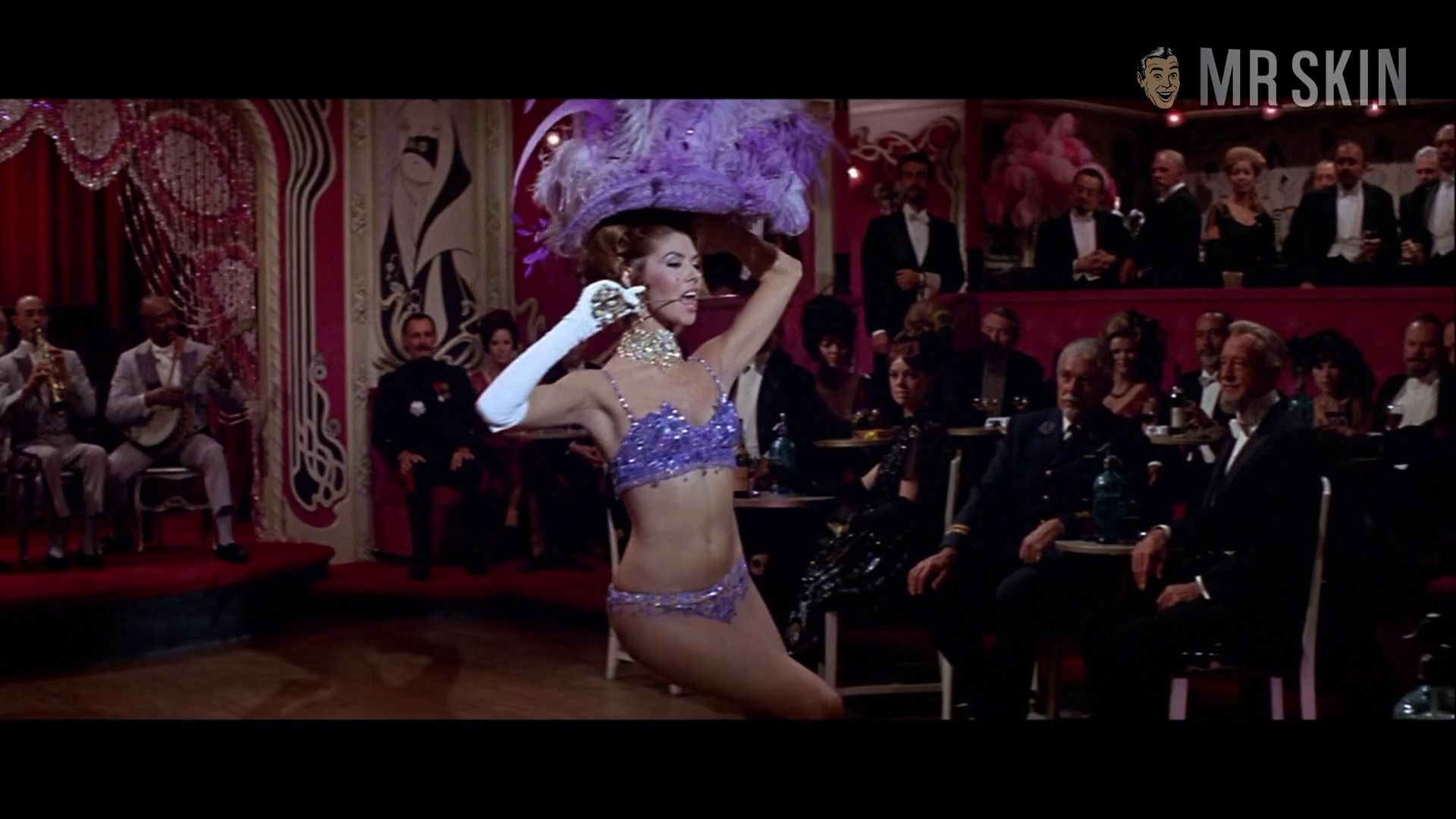 Sometimes good looks are good to have. Ah, who are we kidding, that’s always the case. And even with an overbite, glorious Gloria Paul is gorgeous enough to send fans over the moon. Perhaps that has something to do with her out-of-this-world body! The British-born beauty put her gams to use as a professional ballerina. But while on tour in Rome with an Argentinian dance company, she decided to parlay her assets to the movie industry. After appearing in Copacabana Palace (1962), the appealing ingénue revealed her comic timing and fab figure in the James Bond parody Two Mafiosi Against Goldfinger (1964) and the spaghetti western sendoff For a Few Dollars Less (1966). In between, the hardworking hottie could be seen sizzling up the small screen in the bawdy British hit The Benny Hill Show (1965). The boob tube babe also popped up in the Italian miniseries Za-bum N. 2 (1965) and Un uomo da ridere (1980). Yet, here at Skin Central, we’re partial to Ms. Paul’s part in the Blake Edwards musical Darling Lili (1970). Although the movie is rated G, it didn’t stop Gloria from flashing her fine flesh! In fact, she’s dressed in a barely-there burlesque bikini when she does a striptease that showcases her great legs, tight tummy, ample cleavage and panty-clad ass! Even Julie Andrews can’t keep her eyes off the skintastic dancer. If that’s not arousing enough, Gloria loses her top to prove baby got back and a nip-slip before the scene is over. Bravo!
