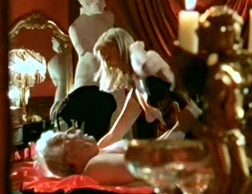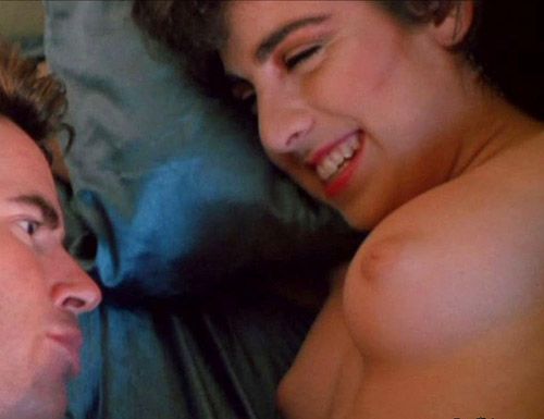 Esther Elise is American, which means there'll be no language barrier. I've looked up some of her movies, though, and can't make heads or tails of them. For instance, Deathrow Gameshow (1987) (Picture: 1), where Esther sleeps topless (heads) with her lover, they've got no sheet to make proper love through! But what I really can't understand is Hollywood Chainsaw Hookers (1988) (Picture: 1). In it, Esther poses topless in a thong (tails) with a baseball bat. Who does she think she is-Sandy Koufax?