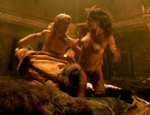 He's young, he's beautiful, he's the leader of Macedonia, and he's ... Irish? Hey, it doesn't matter anyway, since all sane eyes will be focused on sexbombs Rosario Dawson and Angelina Jolie in director Oliver Stone's big-budget biopic Alexander. Angelic Angelina Jolie is on hand as Olympias, the young king's mother, and she's the curviest thing to wear a toga since John Belushi. As gorgeous as Ms. Jolie is, however, Rosario steals the skinematic spotlight (Picture: 1 - 2 - 3). The riveting and ravishing Rosario stars as Roxane, the dark-hued vixen who captures Alexander's heart--not to mention his black-Irish dick! The two get married and she gives birth to Alexander's son. Of course, the young ruler's dead before his kid is even born, but at least he was around for the conception! After the titillating one-two punch of Sin City and Alexander, Dawson fans who have been coasting for seven years on the frisky fumes of her He Got Game skin turn can finally revel in a heaping helping of Rosario's honey-skinned/dark-nipped perfection. Sure, Alexander conquered ninety percent of the known world by the age of twenty-five, but this ultimate trophy wife remains his most impressive conquest.