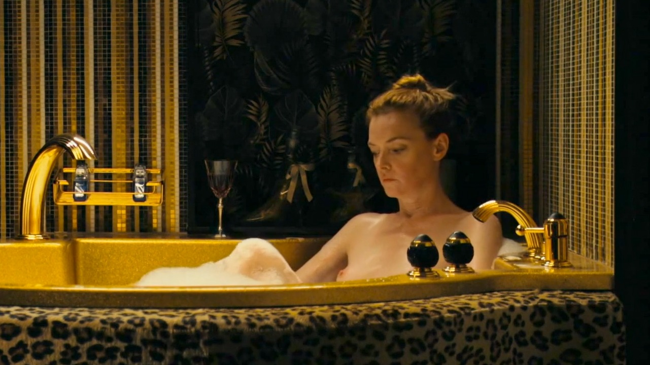 This Belgian/French neo-noir thriller finds femme fatale Kate Moran showing us her right breast in the tub!