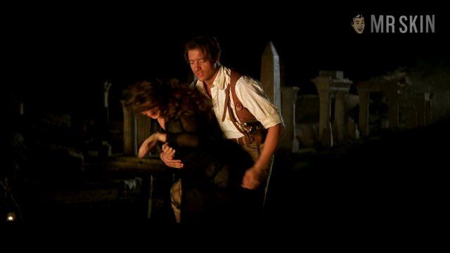 The blockbuster action flick The Mummy (1999) stars Brendan Fraser as an adventurer who, along with his librarian wife (Rachel Weisz) and her ne’er-do-well brother (John Hannah), awakens an ancient Egyptian mummy (Arnold Vosloo) while excavating a tomb. Now they must face killer insects, plagues, and the angry undead. Venezuelan model-actress Patricia Velasquez treats us to the sight of her curvaceous form clothed in a fishnet outfit as the mummy’s mistress in a flashback from fourteenth-century BC Thebes. Nice pyramids!